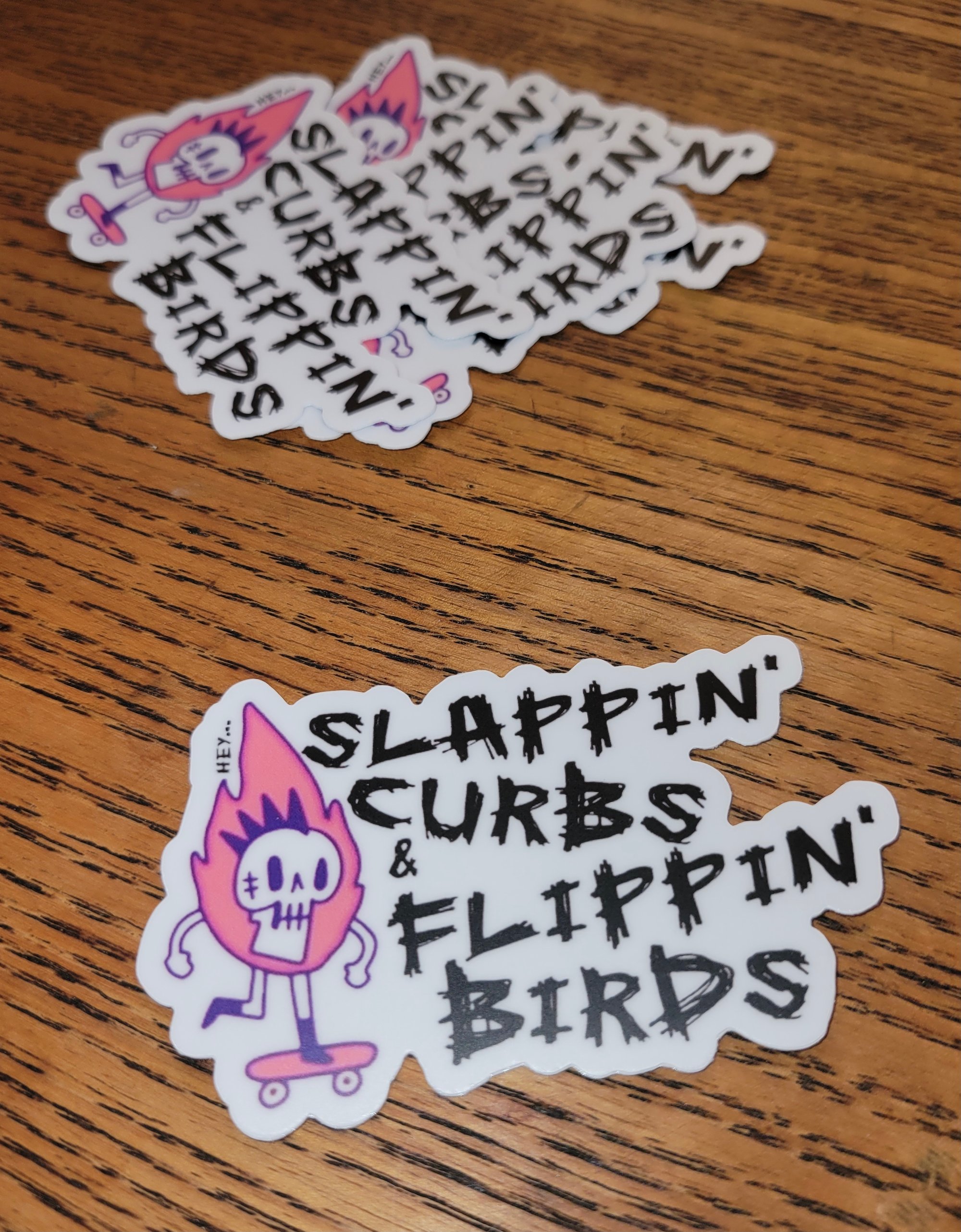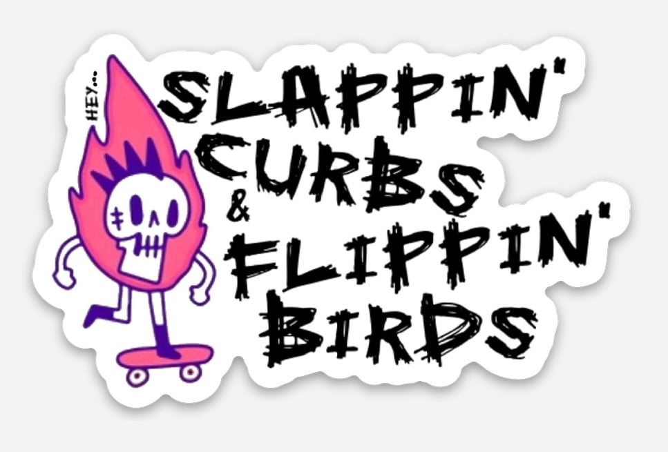 Sometimes you slap the curb, sometimes the curb slaps you. Old school, skate-punk inspired graphic. Unleash your inner John Lucero, and if you know what that means and who that is, then this sticker is for you.