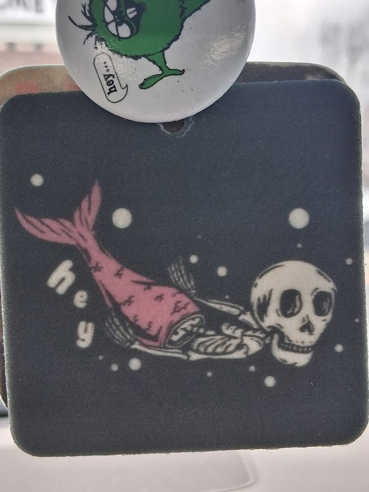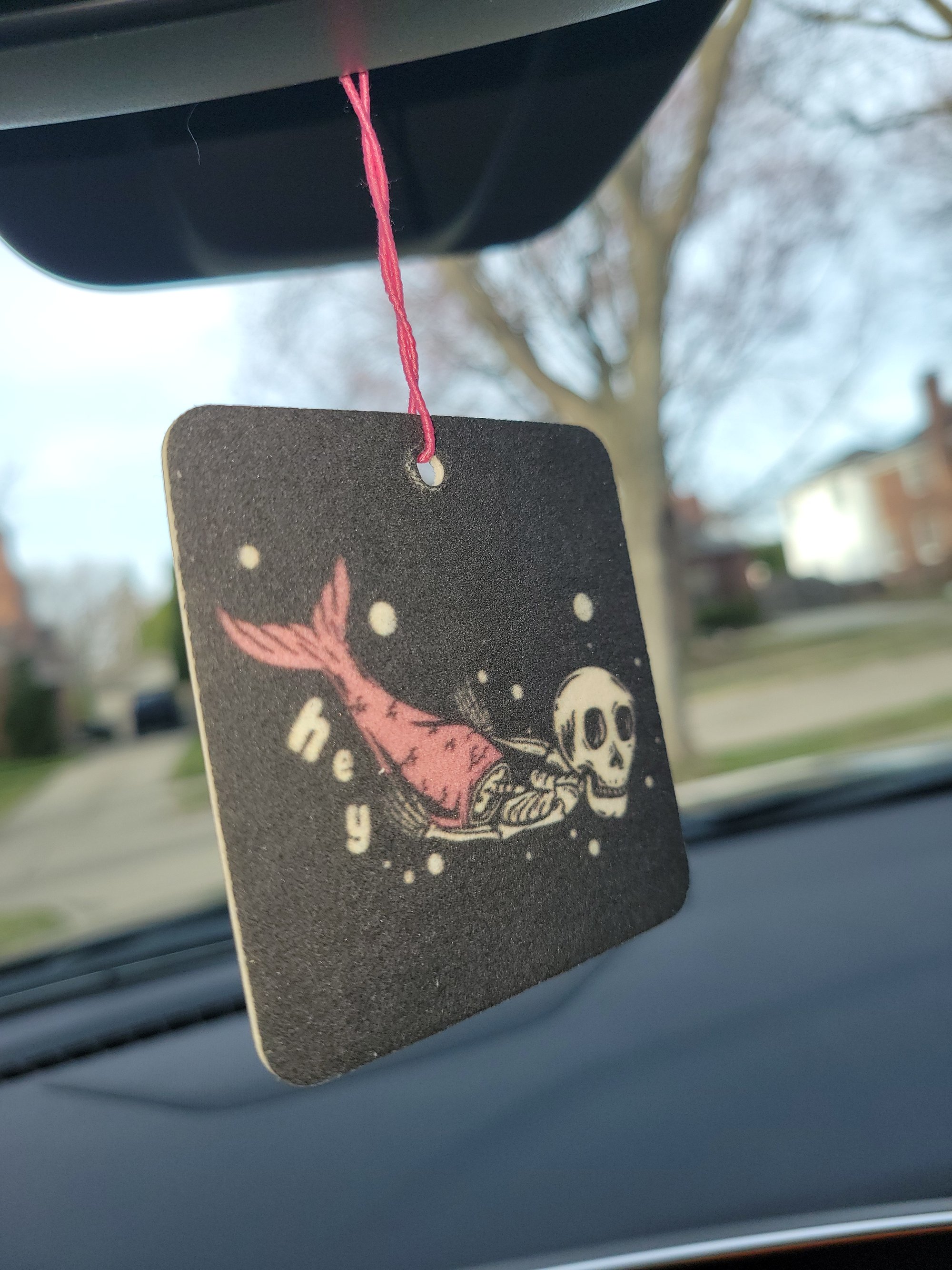 Is your vehicle stinky? While an air freshener won’t kill the funk from the bag of dirty gym clothes you keep forgetting to take out, it can at least mask the nastiness for a while. Or maybe you’re not stinky, you want to keep it that way and you’ve got a tad more style than the pine tree people. This aromatic little guy will unapologetically let everyone around know that it’s got a fondness for a coconuts . Works equally well in a car, truck, tent, SUV, camper, bus, RV, the cabin of a boat...you know where I’m going with this. And in the ultimate act of redundancy, it’s got the same graphic printed on both sides.